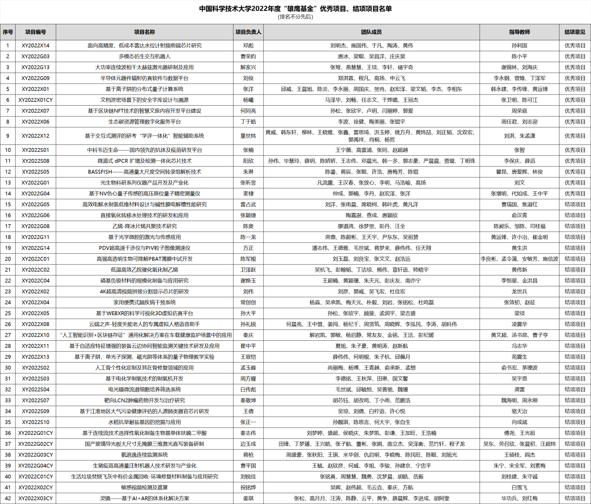 附件2:天行体育开户·(中国大陆)官方网站2022年度“雄鹰基金”优秀项目、结项项目名单