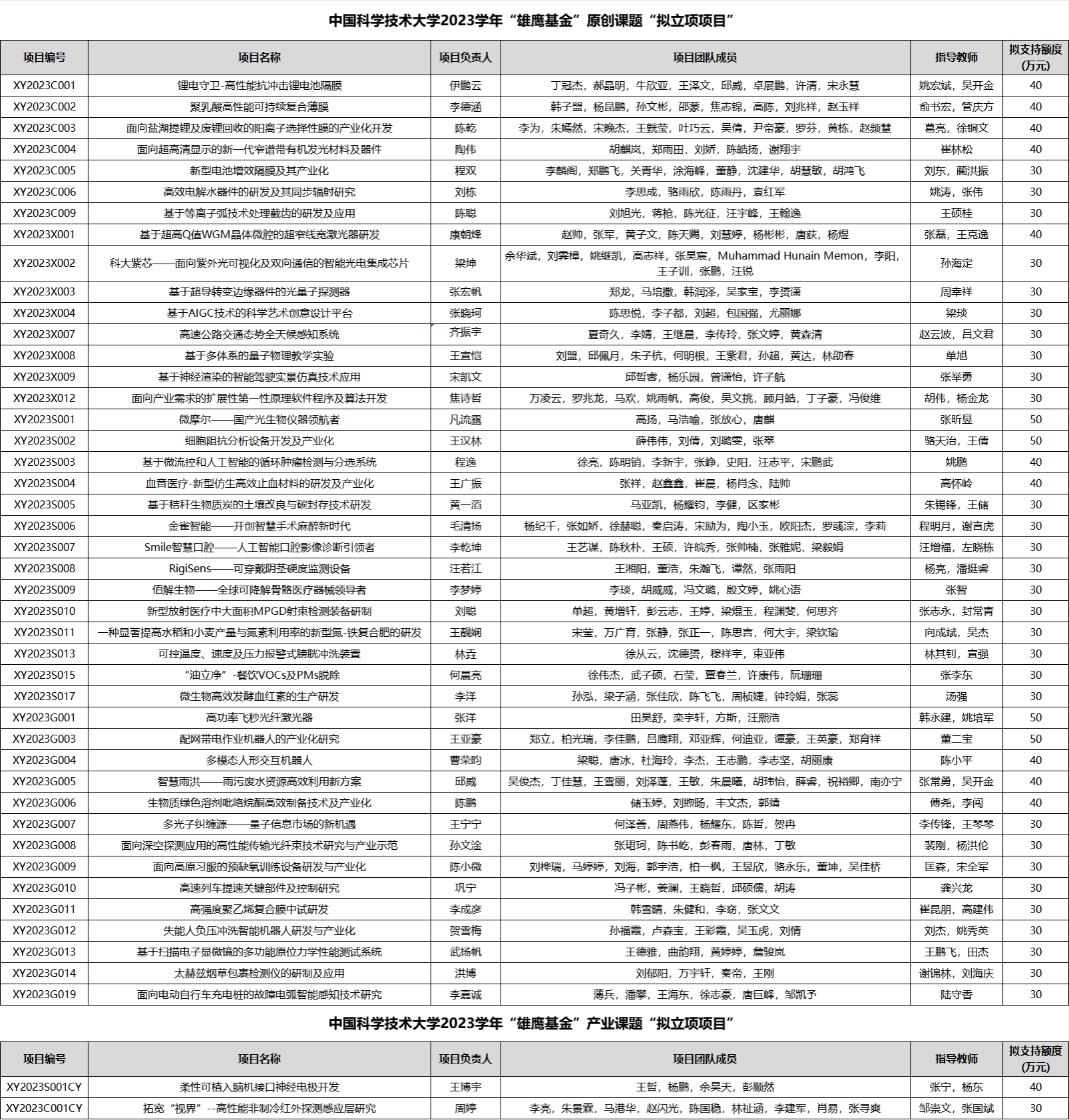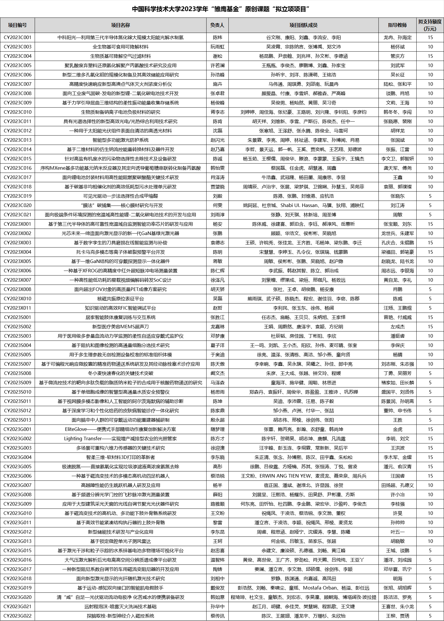 天行体育开户·(中国大陆)官方网站2023学年“雏鹰基金”拟立项项目
