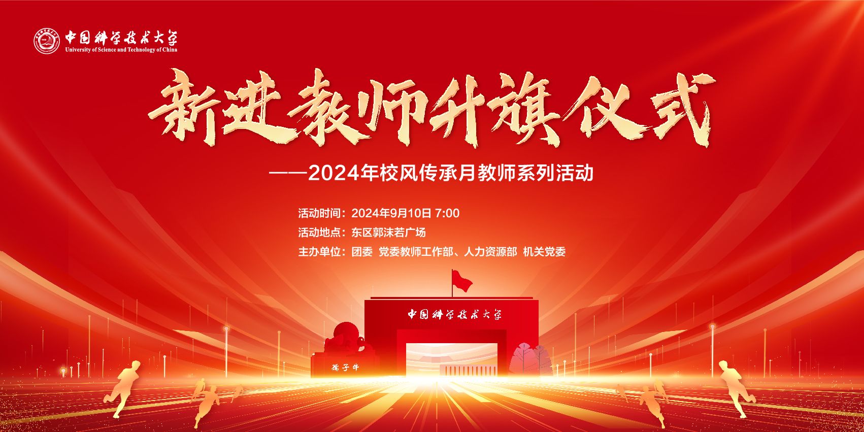 二、学校定于9月10日上午7:00,在东区郭沫若广场举行新进教师升旗仪式,参与人员另行通知。